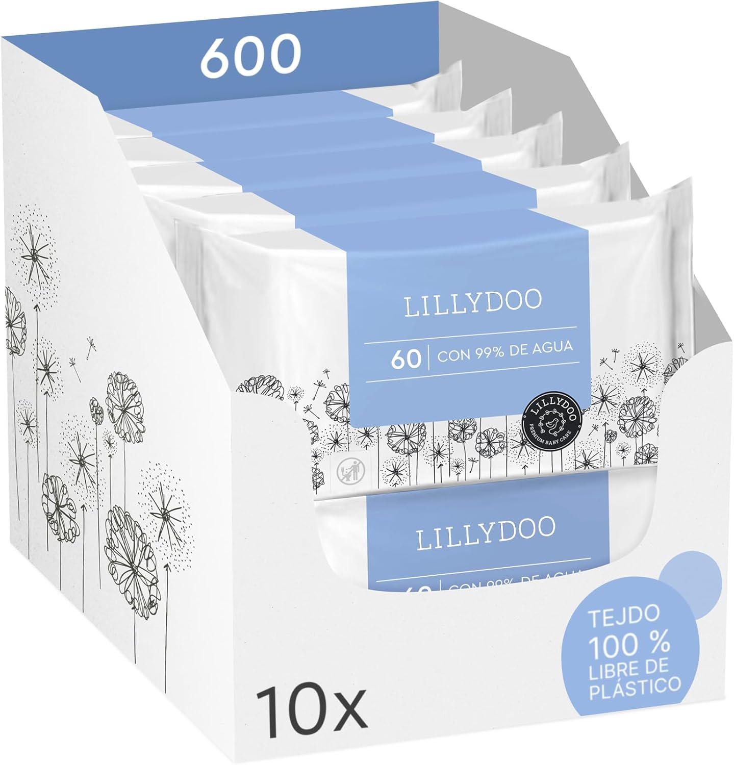 LILLYDOO ▫️ Toalhetes de bebé com 99% de água, 10 embalagens de 600 unidades.