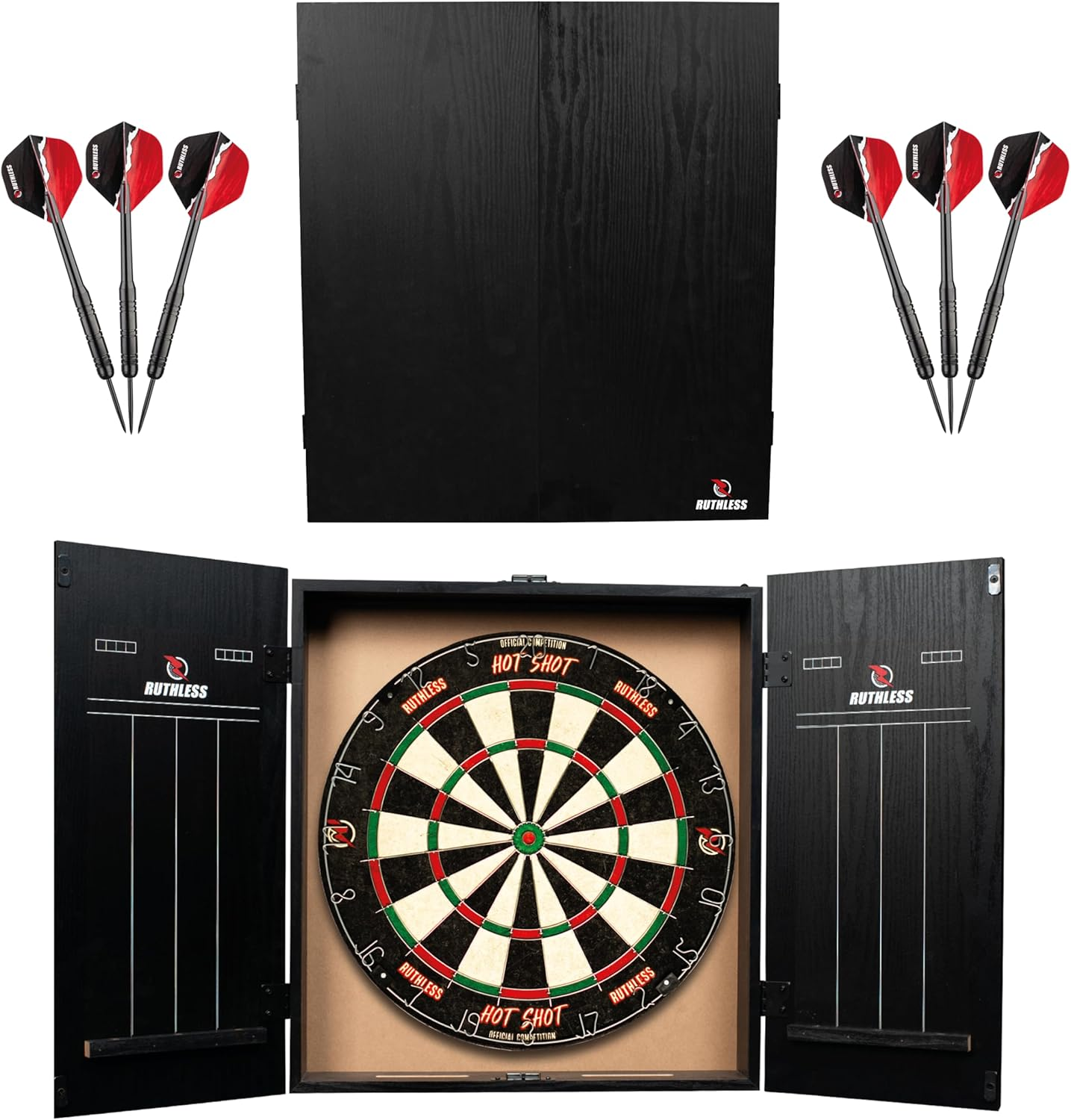Ruthless ▫️ Centro de dardos doméstico completo com armário e 2 conjuntos de dardos CAB518